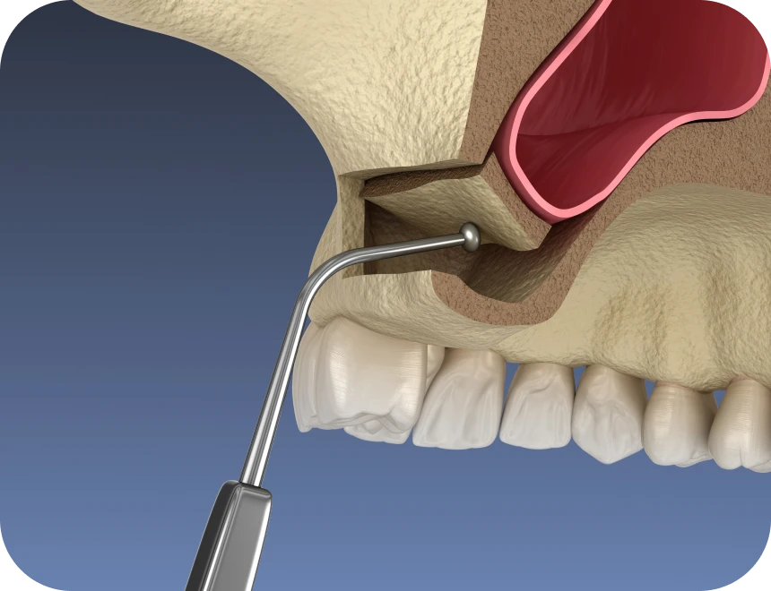 Dans les régions postérieures du maxillaire, la hauteur osseuse est parfois limitée par la proximité du sinus. Pour compenser, les praticiens recourent à une greffe de sinus, ou sinus lift.